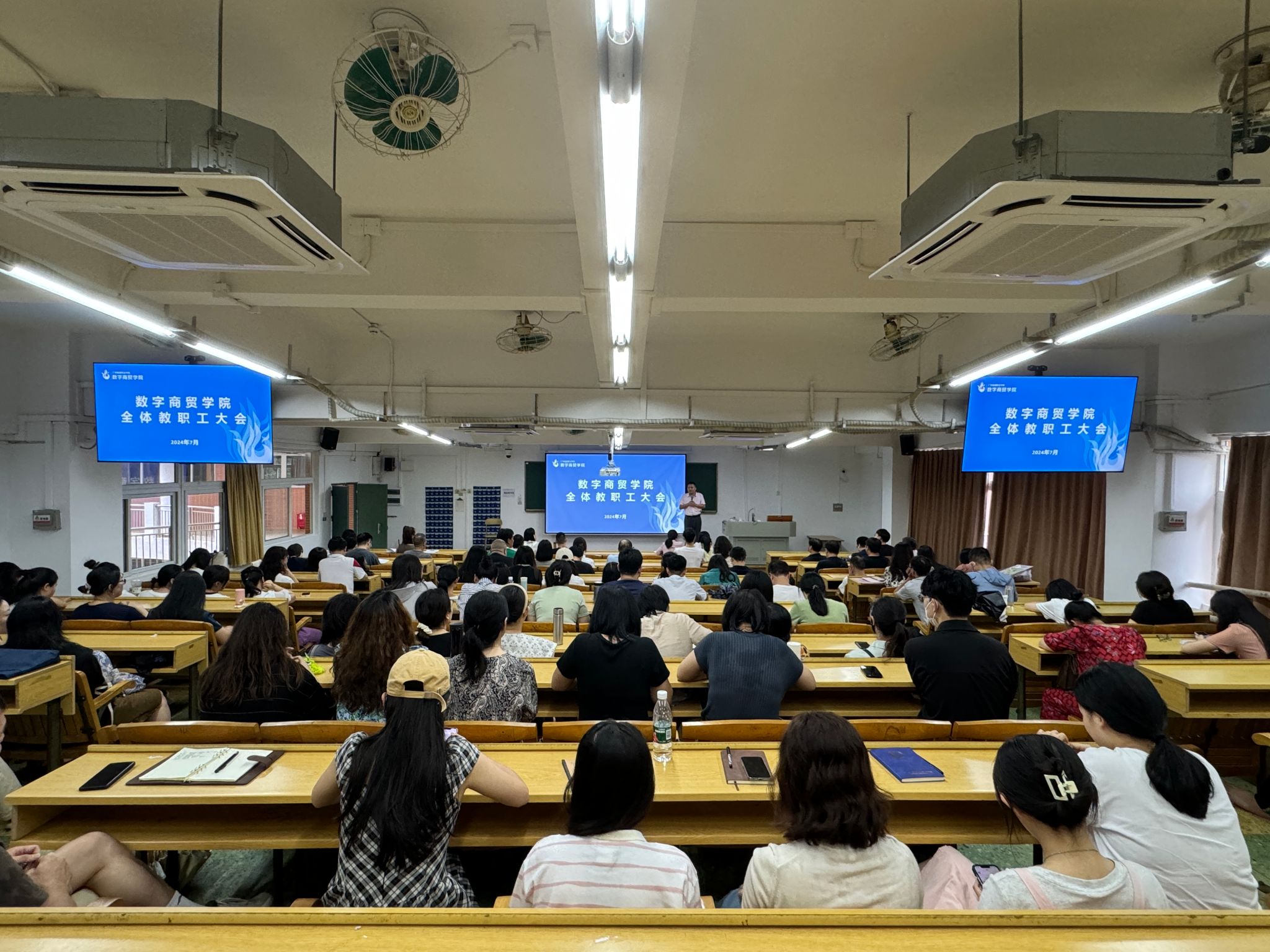 7月11日下午,数字商贸学院在人文艺术楼322教室召开了期末总结会暨全体教职工大会。本次会议主要围绕本学期的工作总结、教师暑假期间的安全教育、展望和规划下学期的工作方向展开。会议由学院党委书记、院长赵团结主持,全体教职工参加了会议。