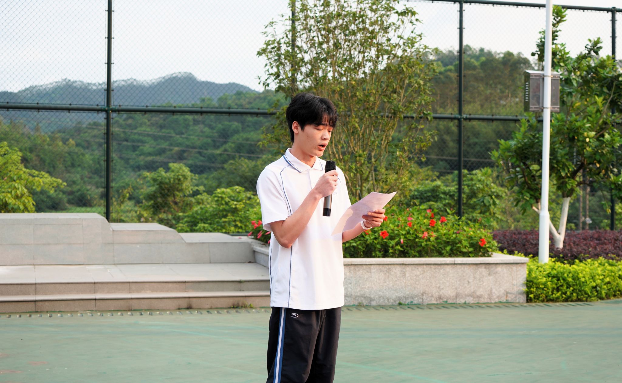 国旗下讲话环节,2024级跨境电子商务专业的何中辉同学对竞赛经历进行分享。据悉,何中辉同学在2025-2026学年广东省职业院校学生专业技能大赛中荣获“互联网+国际经济与贸易”赛项一等奖,还曾获得第七届全国数字贸易技能大赛两项一等奖、校级一等奖学金等多项荣誉。他结合自身学习和参赛经历,分享了成长感悟,传递了勤奋进取、奋勇争先的正能量。