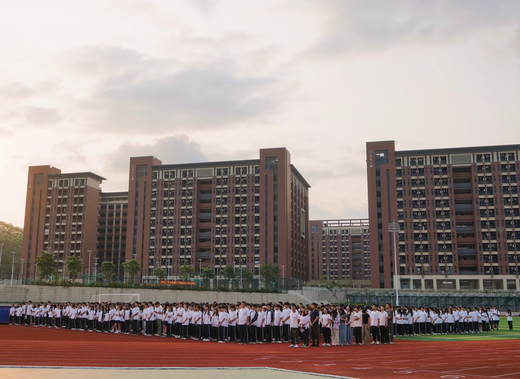 仪式伊始,出旗环节有序开展,全体师生肃立静候,目光追随着国旗方阵稳步入场,现场秩序井然。随后进入升国旗、奏唱国歌环节,全体师生肃立行注目礼,嘹亮的国歌声中,大家神情庄重,深切表达对祖国的崇敬与热爱,国歌奏毕,国旗护卫队礼毕退场。