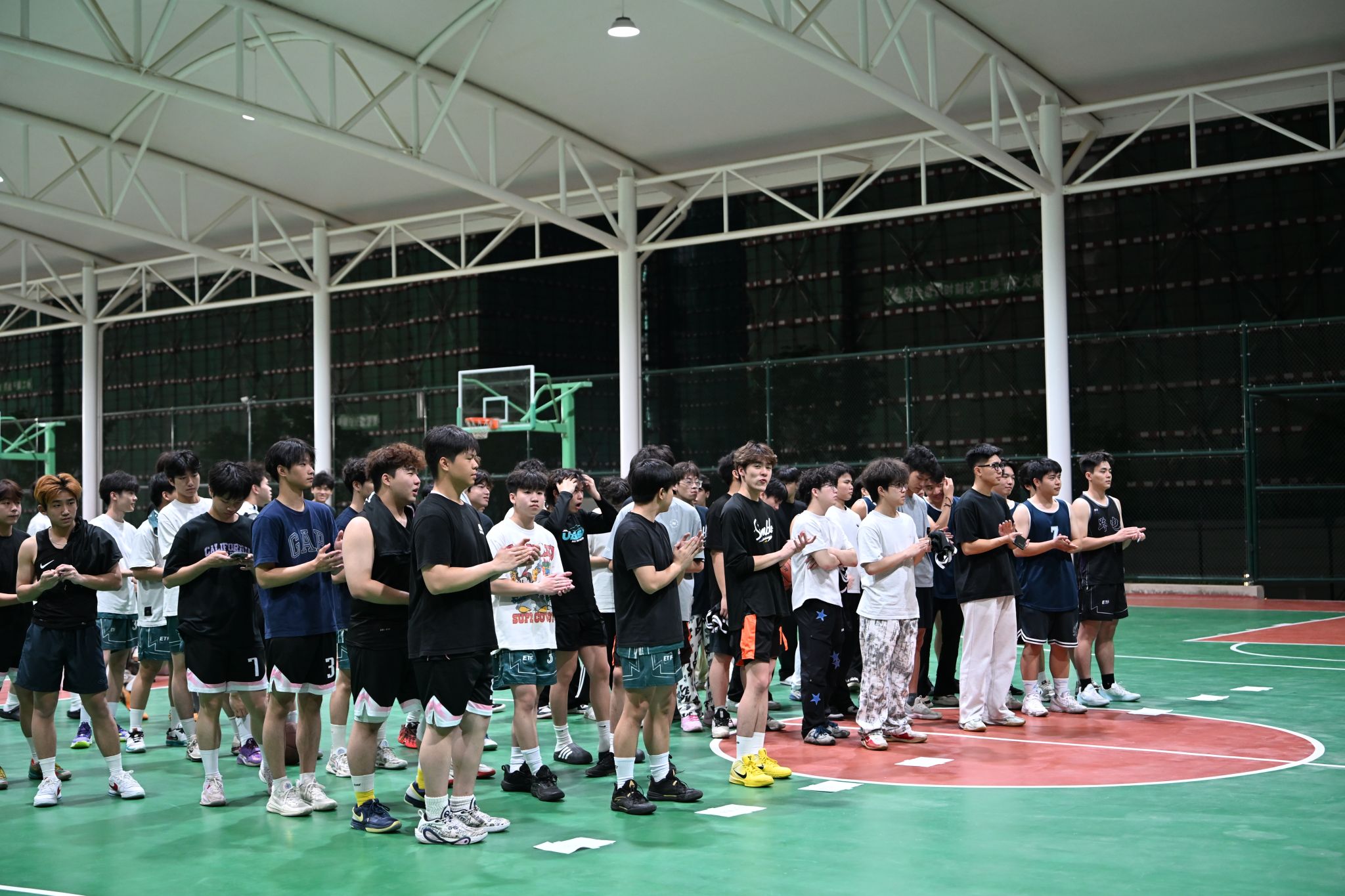 开幕式上,主持人有序开场,向莅临现场的领导、老师,以及所有参与人员致以欢迎和感谢,简要介绍了本次篮球赛的筹备情况与赛事安排,明确赛事核心宗旨不仅是为学子提供交流展示的平台,更希望以赛事为契机,带动更多学生走出宿舍,远离电子设备,主动参与体育锻炼,在运动中增强体质、收获友谊。