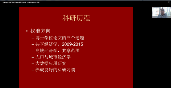 12月2日下午,外语外贸学院邀请中国社会科学院金融研究所博士后、研究员周晓津专家作了题为“社科基金申报及人口大数据研究进展”的讲座。讲座以现场、腾讯会议相结合的方式举行。科技处处长鲁五一、外语外贸学院副院长李霜和“七人普”数据团队成员在一教317会议室现场参加讲座,外语外贸学院全体教师以及学校部门的部分教师在线上聆听了此次讲座。