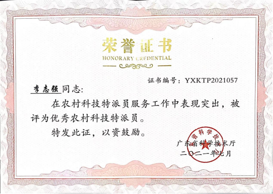 7月12日,广东省科学技术厅发布了《关于通报表扬一批农村科技特派员和组织实施单位的通知》,我院院长李志强被评为优秀农村科技特派员。