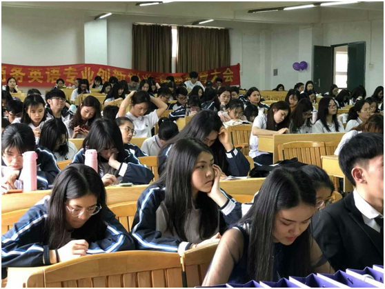3月28日下午,外语外贸学院与洋葱集团“校企合作签约授牌仪式暨创新创业宣讲会”在1422教室隆重举行。创教学院院长邱漠河、外语外贸学院副院长李霜、商英教研室副主任柳韬略、冯倩欣,洋葱集团校企顾问陈日海、陈嘉丽,校企合作创业导师刘燕娜及近200名学生参加本次活动。