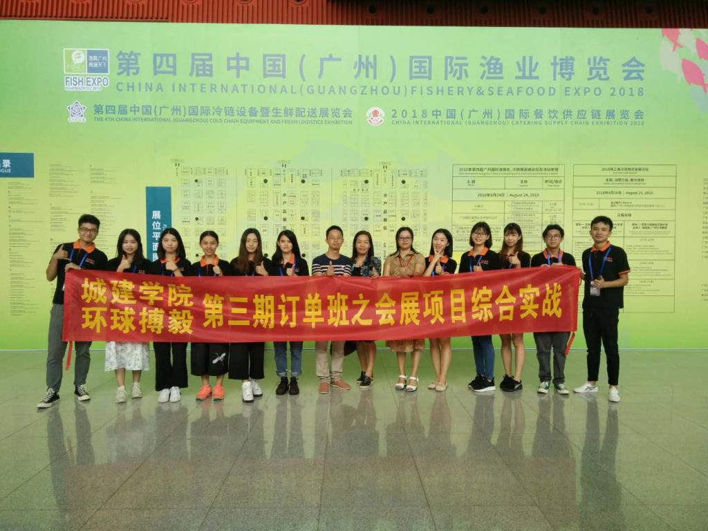 7月16日至8月28日,借助在琶洲广交会展馆举办2018年中国(广州)国际渔业博览会的机遇,外语外贸学院与广州环球搏毅展览有限公司再次开展深度合作,通过学生跟岗实习,成功举行第三期会展专业订单班综合实战训练。
