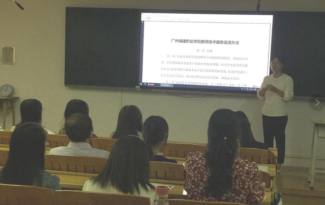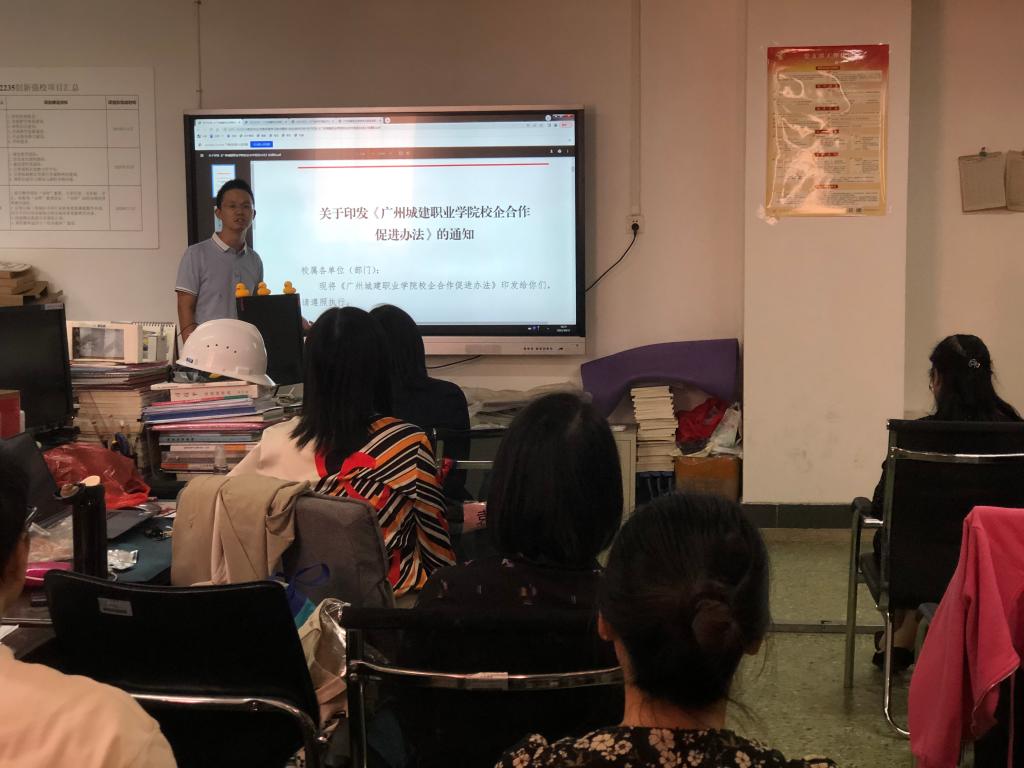 10月13日下午,为了积极响应和传达学校的文件精神,外语外贸学院以教研室为单位,组织教师学习学校科技处最新发布的《关于教师开展技术服务的促进办法》《广州城建职业学院技术服务创新平认定管理办法》《广州城建职业学院校企合作促进办法》和《广州城建职业学院校企合作专员管理办法》等四个有关于技术服务和校企合作的文件。