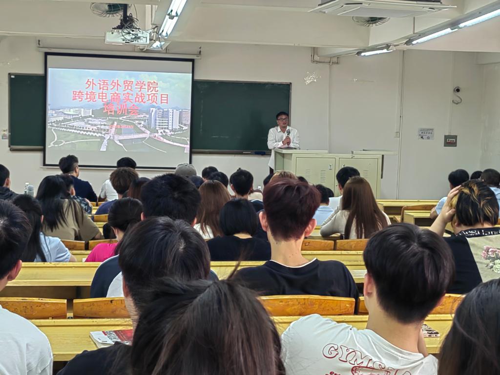 3月23日下午,广州城建职业学院外语外贸学院在人文艺术楼1422室举办了跨境电商实战项目培训会。外语外贸学院院长李志强、24位指导老师和27支实战团队成员,参加了本次培训会。深圳市伍壹叁数字科技有限公司的校企项目总监周晓峰先生等一行4人应邀出席并做了专题报告。会议由潘慧主持。