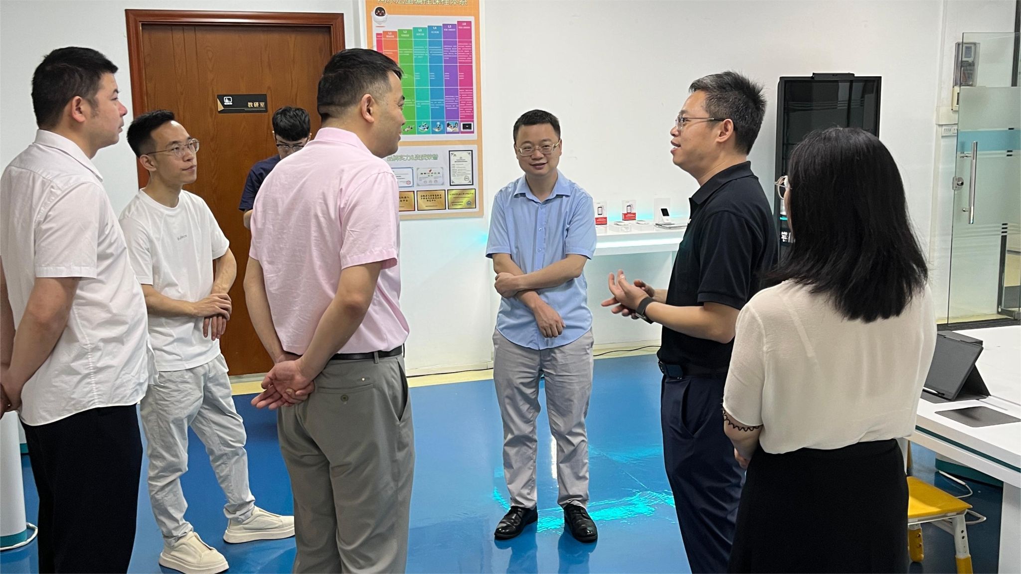 4月18日上午,学院党委书记、院长赵团结,副院长袁其玲、商务英语教研室主任梁志华、电子商务教研室主任谢金荣一行4人前往科大讯飞产教融合花都体验店考察交流。为了适应数字化时代的教育需求和转型,数字商贸学院与科大讯飞达成初步战略合作意向,旨在共同推动产教融合,以数字引领促进学院实现跨越式发展。