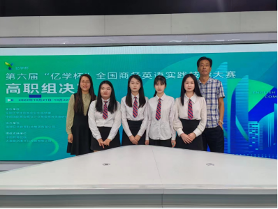 近日,由我院商英教研室主任梁志华和骨干教师肖遥遥带领的学生团队,历经了6个月全国选拔赛,最终在第六届“亿学杯”全国商务英语实践技能大赛高职组总决赛中荣获全国总决赛三等奖。比赛是由全国大学生创新创业实践联盟、中国国际商会商业行业商会商务英语研究委员会、福建亿学教育科技集团有限公司共同主办。