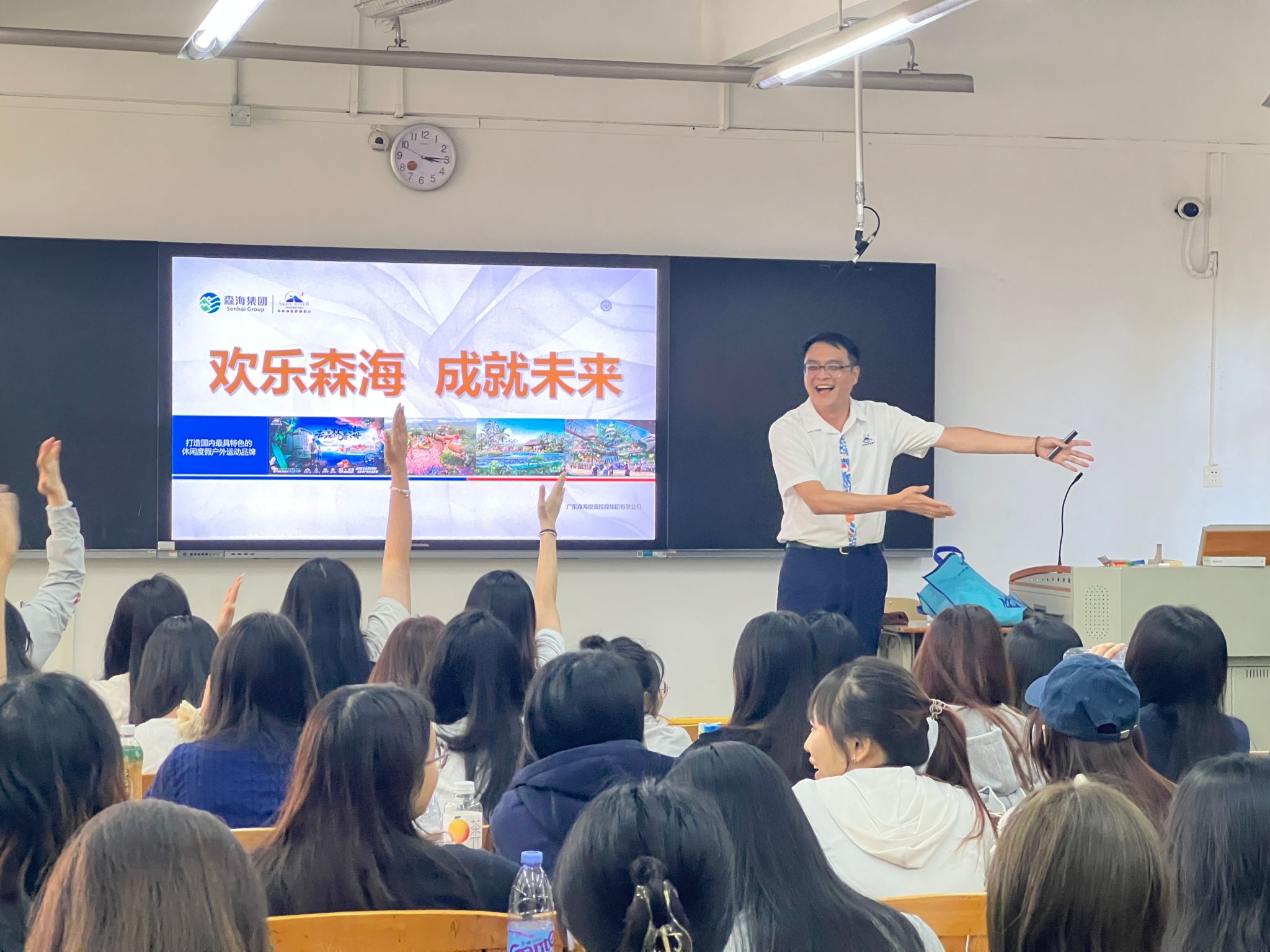 广东森海投资控股集团有限公司陈雄伟主管首先以视频的方式展示了公司的办公环境、团队氛围以及员工成长路径。其次,他讲述了公司的用人制度、卓越管理和创新理念,介绍了公司的业务板块和发展战略。同时,他提到会展行业迎来了前所未有的发展机遇,公司急需大量具备专业素养和创新能力的会展策划与管理等专业人才。他鼓励在座的毕业生要敢于梦想、勇于实践,积极投身于公司的广阔天地。