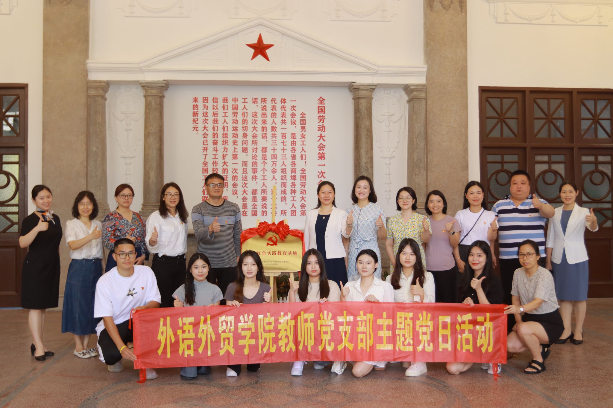 5月26日下午,外语外贸学院教师党支部和国贸高水平专业群党支部在学院党委书记李志强的带领下前往广州市海珠区第一次全国劳动大会旧址进行主题教育。受到广州市第二工人文化宫党总支书记、主任周敏,第一次全国劳动大会旧址主任王建强等热烈欢迎。